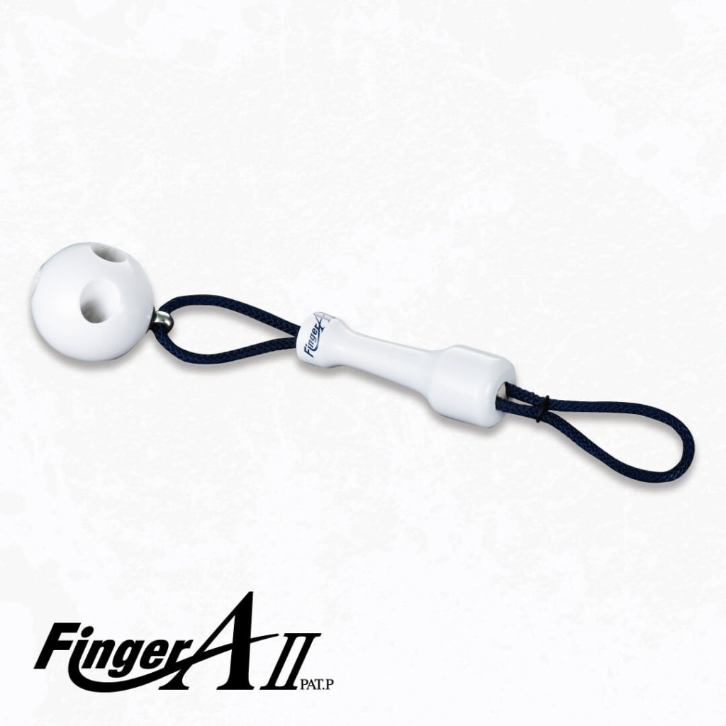 フィンガーエースⅡ木球タイプは、球を指でささえる2つの指穴があります。これは、球を握らずに指を開いて球を持つことで指や手首、ヒジをリラックスさせるためのものです。