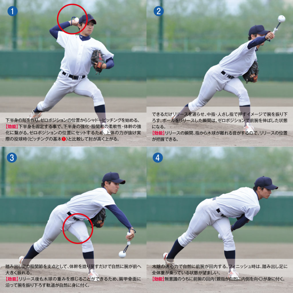 リリースポイントを前に持ってくる練習ができます。ボールを長く持つことで球威力が向上します。