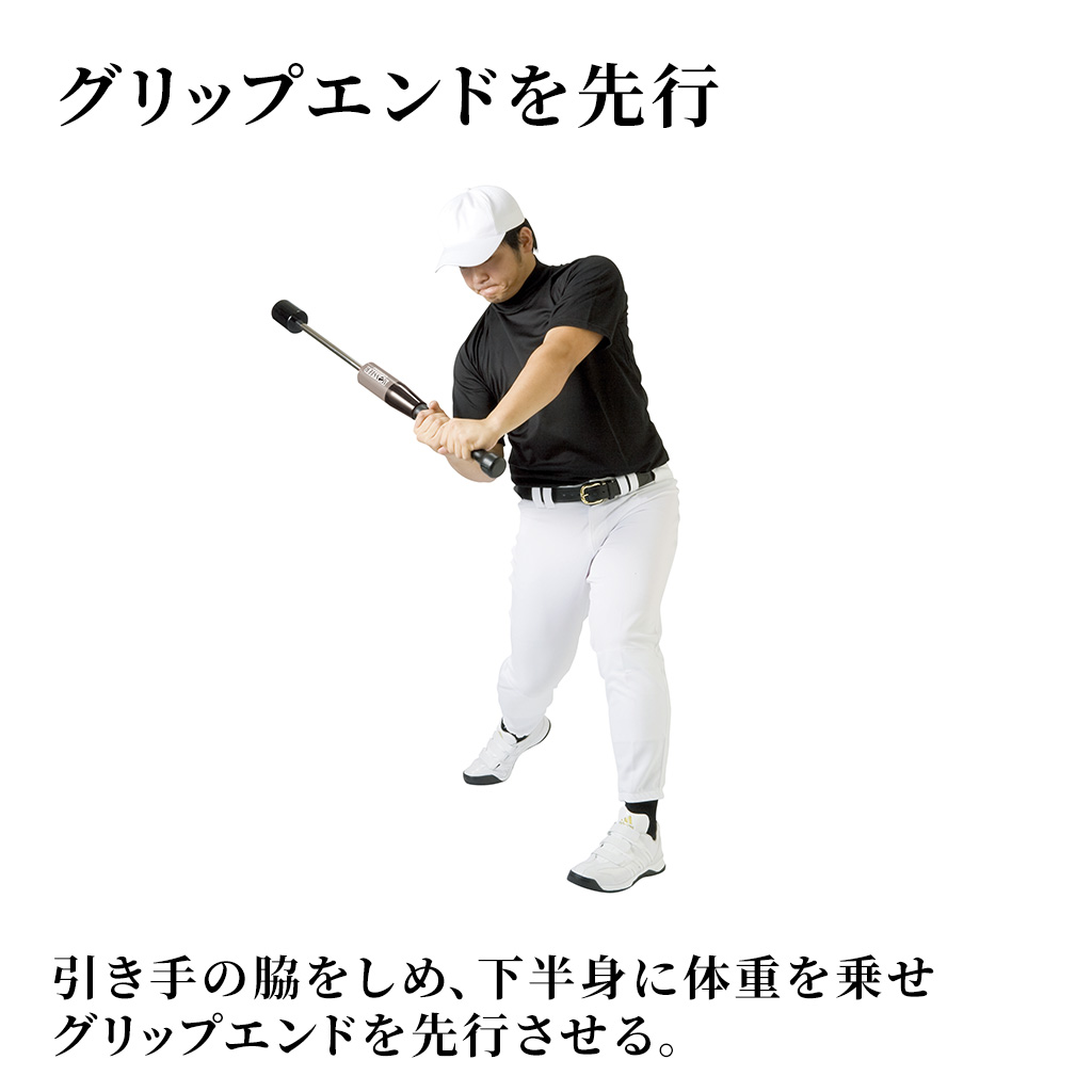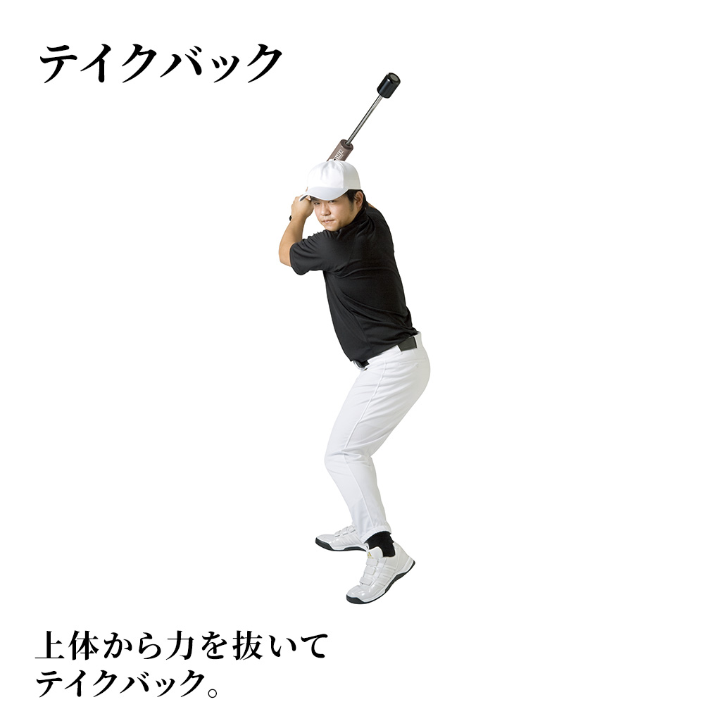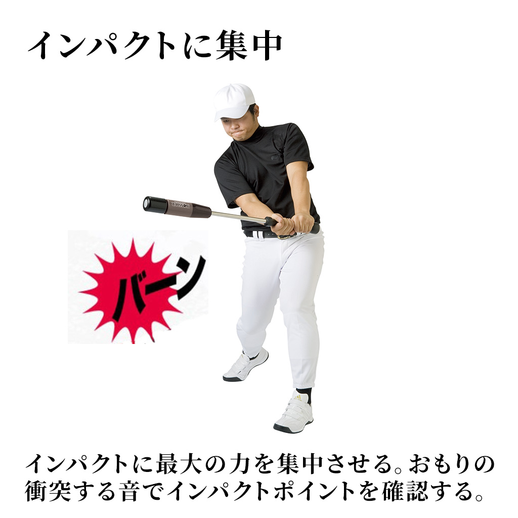 脇を締めヘッドを残した状態で下半身から始動すると、最適なインパクトポイントで快音と負荷を体感できます。