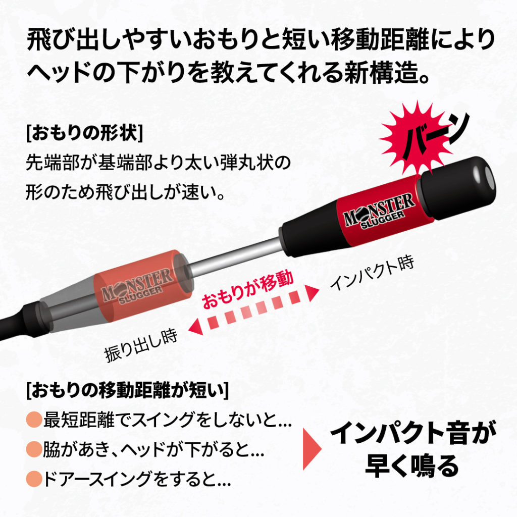 おもりの飛び出しが早く、脇が開いたり、ドアースイングになるとインパクトの音が早く鳴ります。