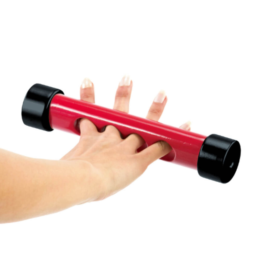 最大の特徴はグリップに4つの穴があいていること。この4つの穴に指を1本ずつ入れて使うことで、握力強化やインナーマッスル強化ができます。握る力がいらない分、関節や筋肉がゆるみ可動域が広がります。